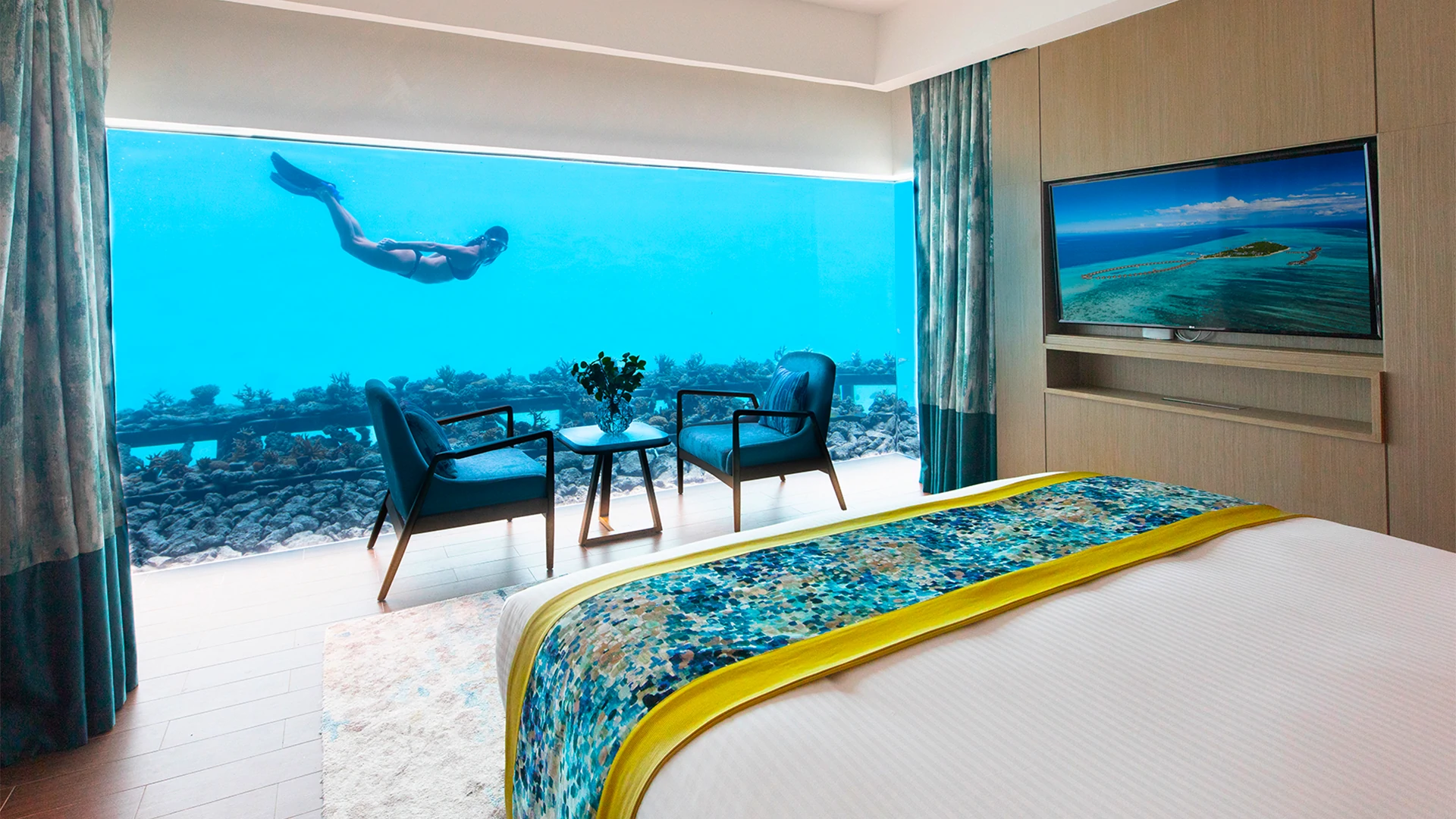 Discover the The Aqua Villa experience by Pullman, an immersive encounter with marine life from the comfort of your bed that will nurture your childhood curiosities and bring them to life. Enjoy the serenity of the Indian Ocean and find the perfect balance of both play and rejuvenation.