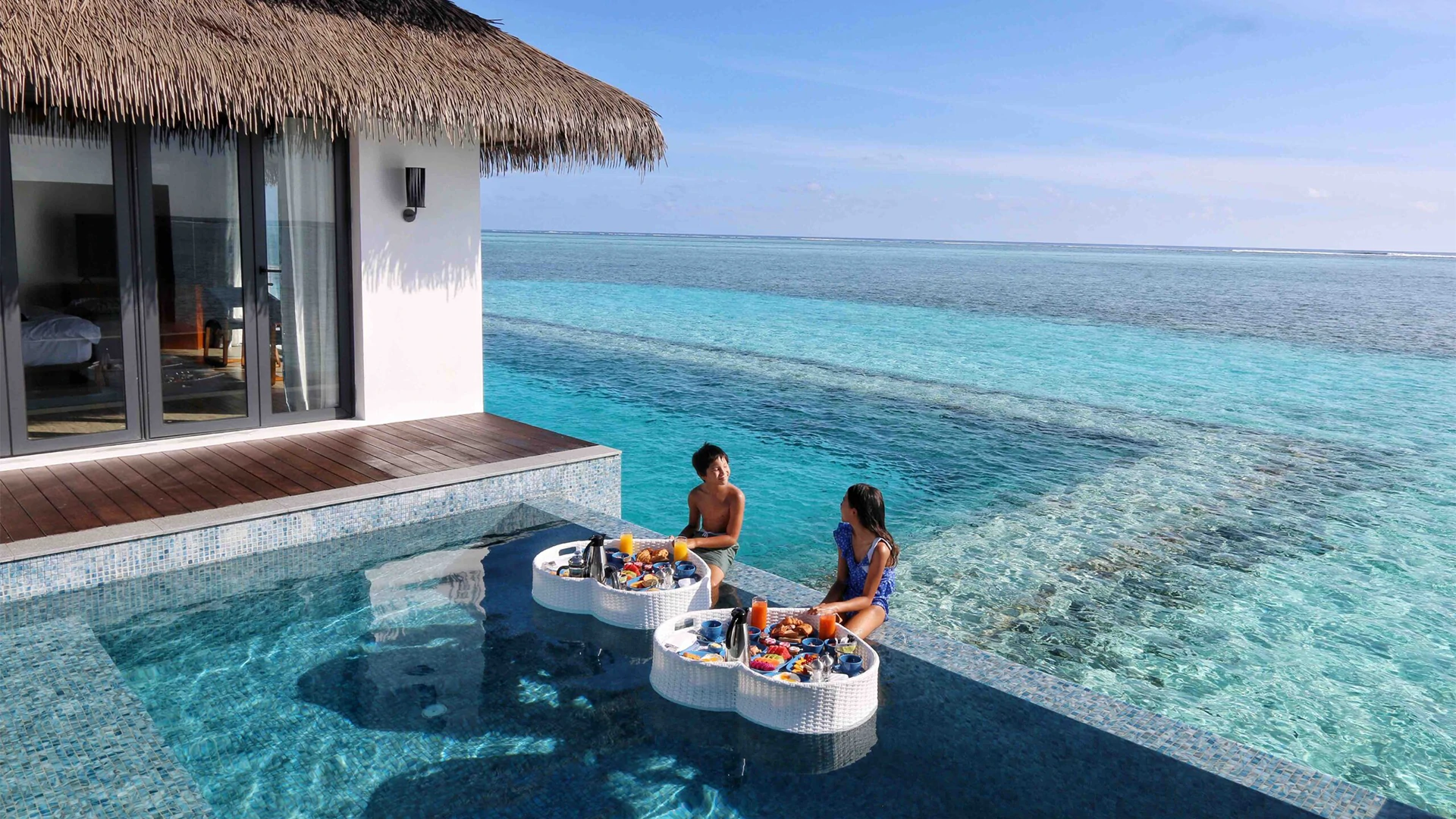 If life is all work and no play, it’s time to get away! the Four Bedroom Ocean Pool Retreat is a sprawling overwater villa outfitted with modern high-tech amenities and luxe accommodations for the perfect fun-filled, sundrenched gathering with family and friends.
