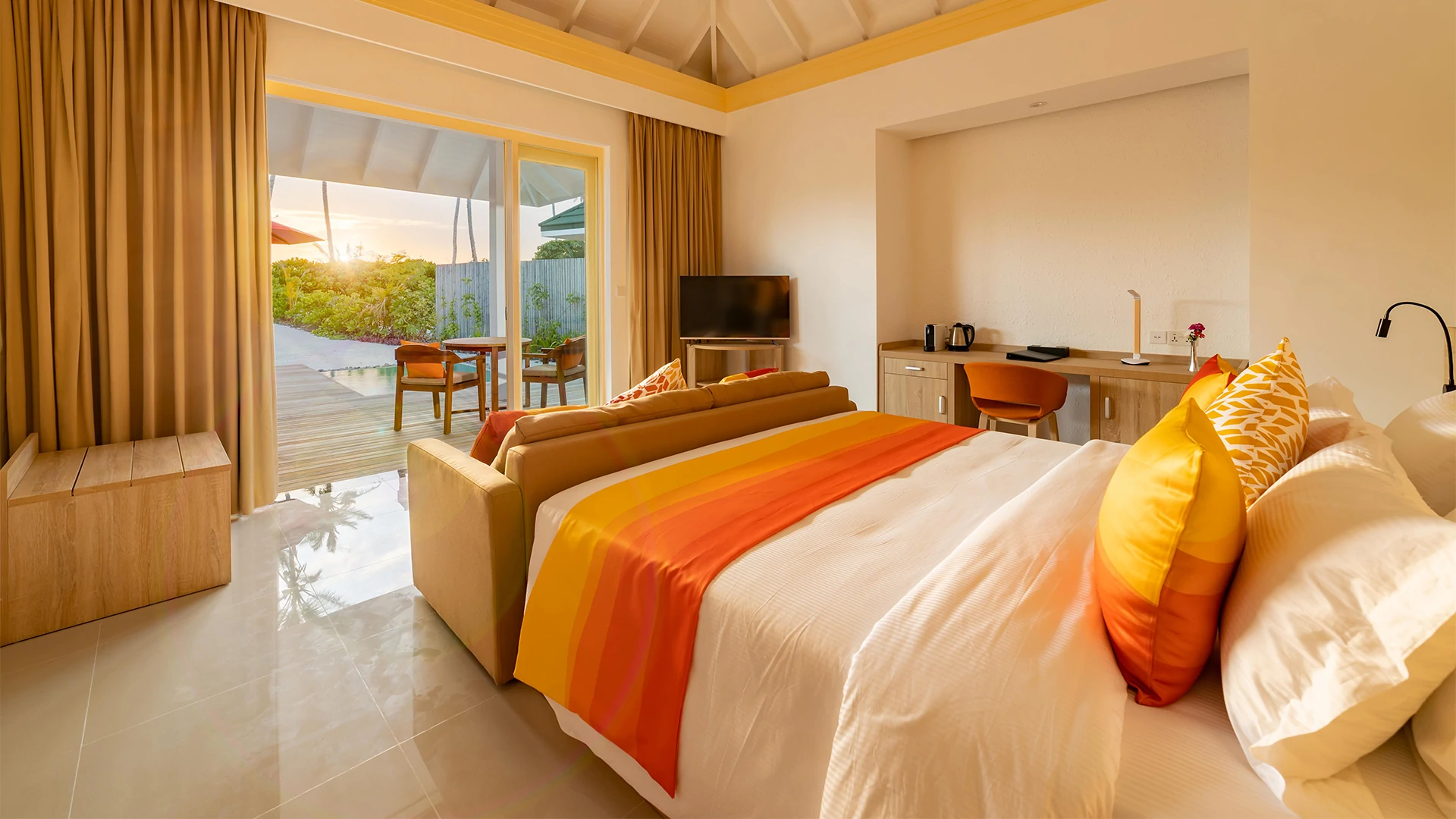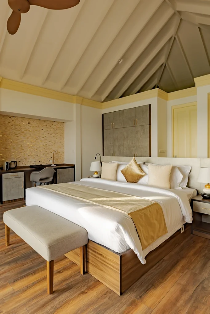 Perfect for holidaymakers that really want to feel the sand between their toes but also enjoy the benefits of having direct access to the turquoise lagoon. Pool Beach Villas are set on the beach front and feature your own private pool, a mini bar, Wi-Fi, a cozy bathroom with indoor and outdoor showers, a super king size bed and a sofa bed. That’s amazing – We think!