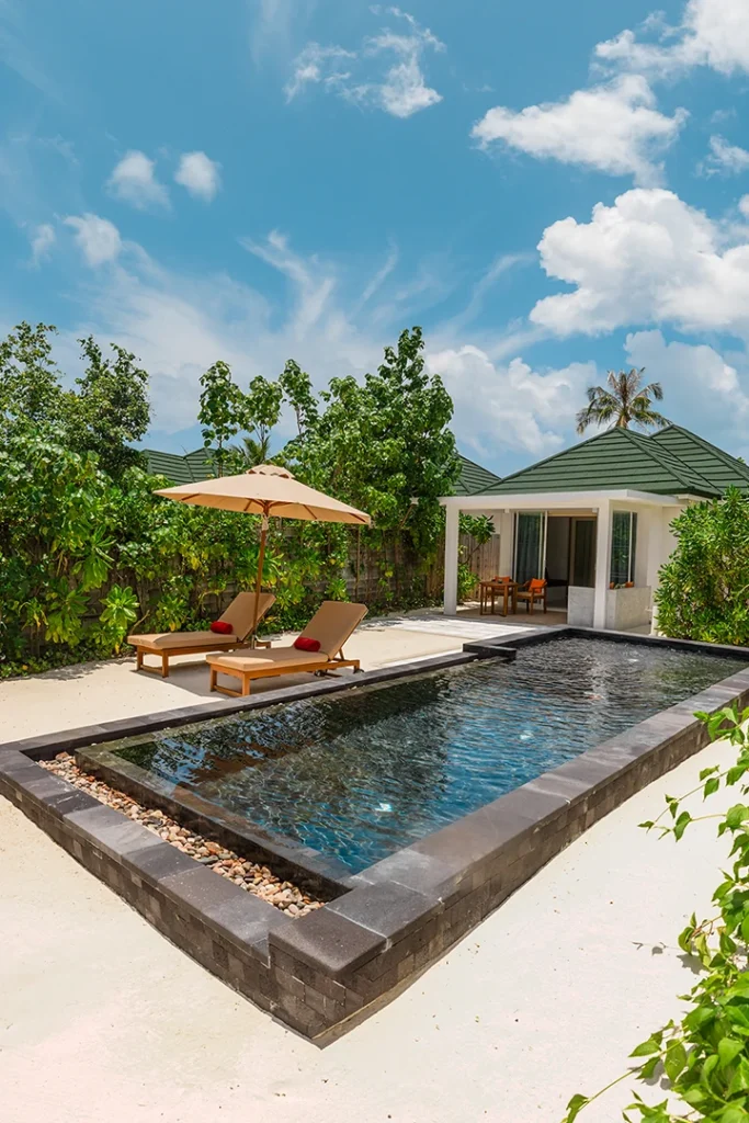 3 Bedroom Pool Beach Villas leave you in awe of that perfect island getaway. Set on the beachfront with direct access to the crystal clear lagoon. These villas also feature a private pool and garden for the ultimate secluded holiday experience with 3 master bedrooms, 3 bathrooms, indoor and outdoor showers, a mini bar, Wi-Fi, separate seating areas and a private terrace to chill and relax at.